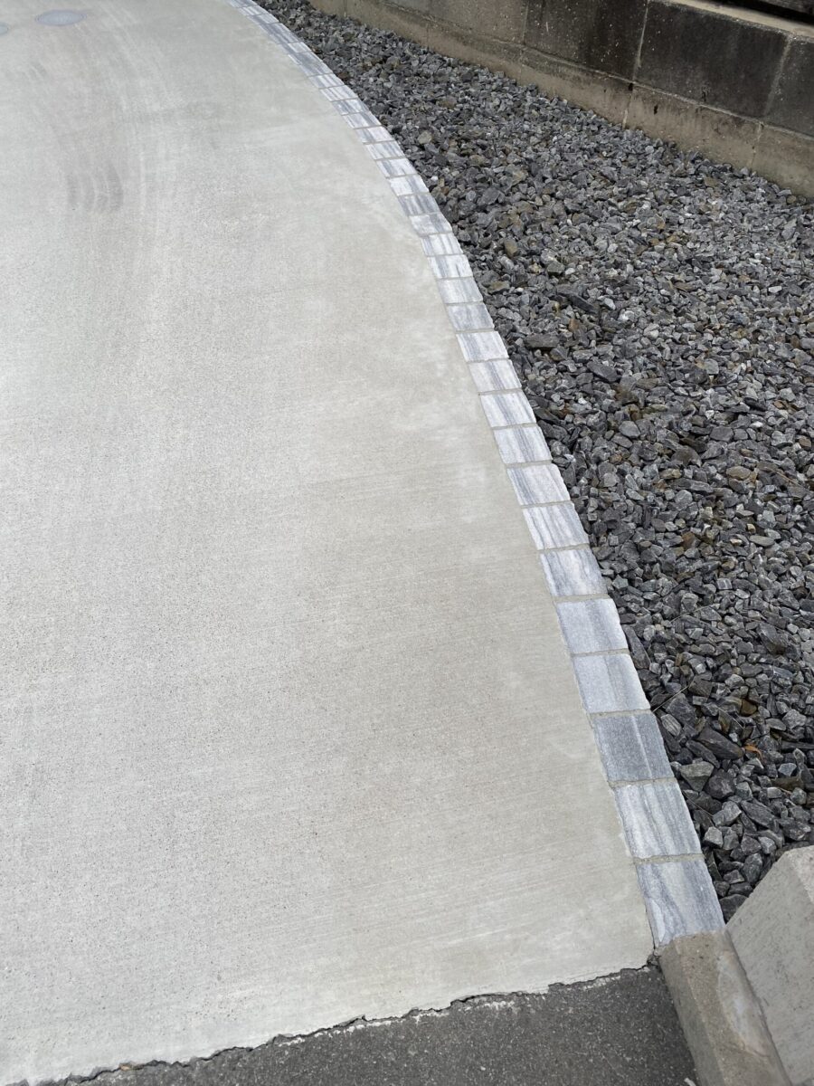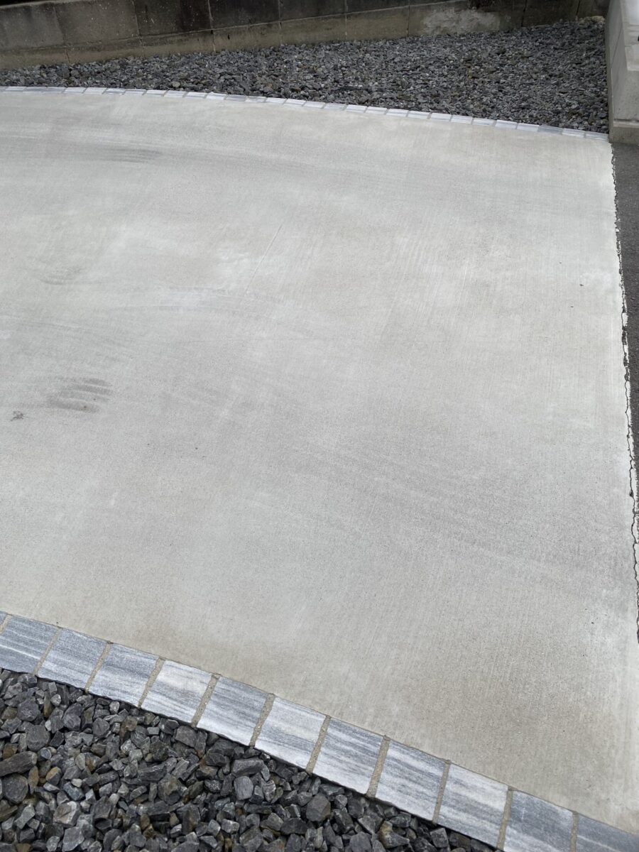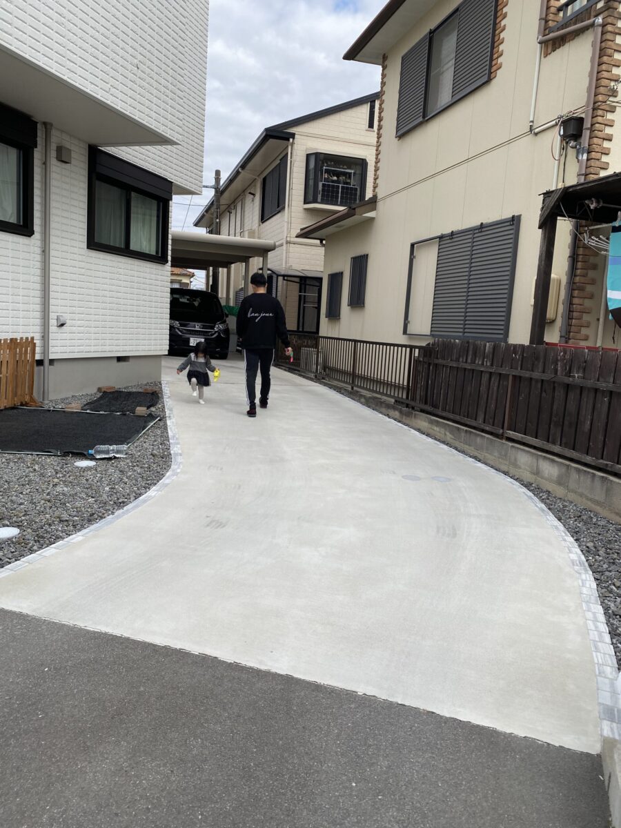施工内容 フェンス・ブロック追加工事、アプローチ、土間コンクリート、見切り石、防草シート、砕石敷き